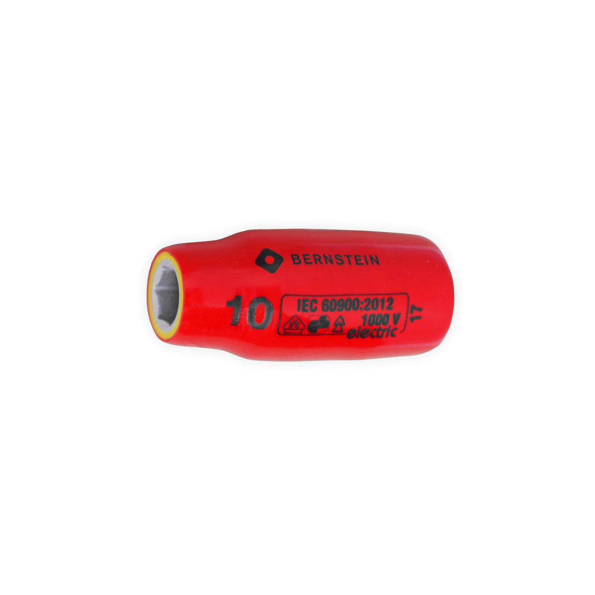 Socket wrench inserts made of chrome vanadium, chrome-plated to DIN 7448 with square drive with 1/2 inch drive.With safety two-layer dip-insulation on the outside red – inside yellow. Damage to the outer red insulation is immediately visible through the underlying yellow insulation. The advantage is a simple and always visible security check. Our VDE tools are tested according to VDE EN 60900 / IEC 60900 (piece by piece) and are approved for working under voltage up to 1000 volts. The insulations are REACH compliant and phthalate free.two-color multilayer-dip-insulation 1000 Vwith square drivemade of chrome vanadiumchromed according to DIN 7448chromed according to DIN 7448weight 60 g